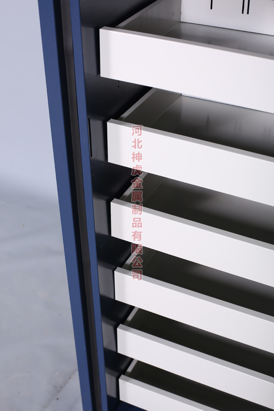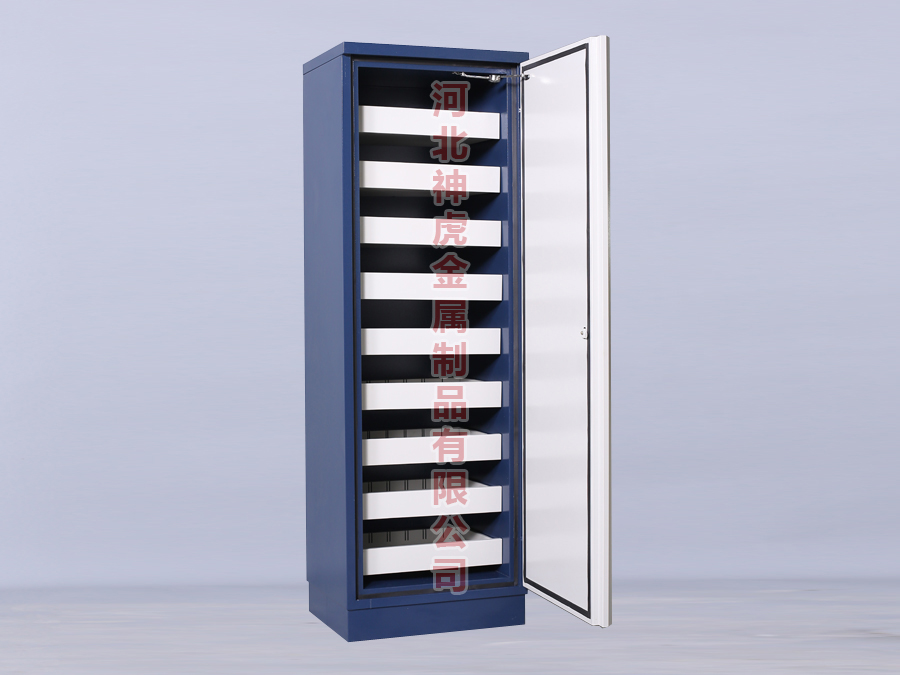 柜體采用1.0mm優(yōu)質(zhì)冷軋鋼板,并對(duì)表面進(jìn)行酸洗、磷化、靜電噴涂處理,使柜體即使在高濕等惡劣環(huán)境下也不會(huì)出現(xiàn)脫落表皮,退色等現(xiàn)象;抽屜前端標(biāo)識(shí)板,用于標(biāo)識(shí)各組光盤,可粘貼類別、位置、條碼、信息等標(biāo)簽;采用美式超靜音滑軌,承重45Kg,使用中輕便、低音,壽命可達(dá)大于10000次.。